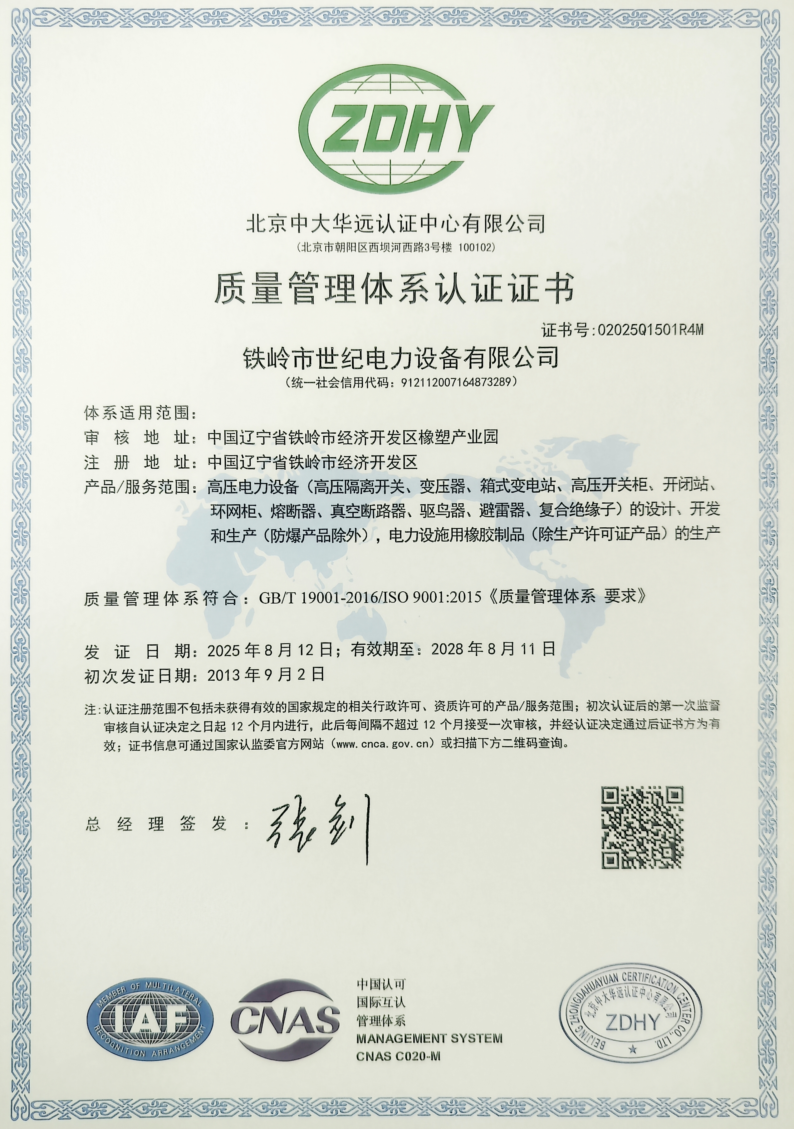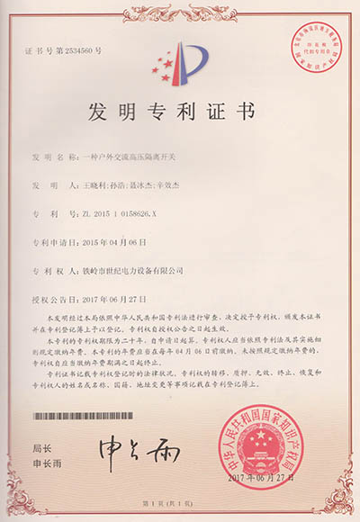 鐵嶺市世紀電力設備有限公司是集科研開發(fā)、生產制造、用戶服務于一體的國家高新技術企業(yè),始建于1999年,位于鐵嶺經濟開發(fā)區(qū),占地面積5萬余平方米,建筑面積2萬余平方米。主要從事國家電網配套戶外高低壓隔離開關、電力電纜、變壓器成套裝置、高低壓開關柜、箱式變電站、絕緣子等產品的研發(fā)、生產和銷售。公司現有國家發(fā)明專利6項、實用新型專利9項,公司通過了ISO9001國際質量管理體系認證、ISO14001環(huán)境管理體系認證和ISO 45001職業(yè)健康安全體系認證。